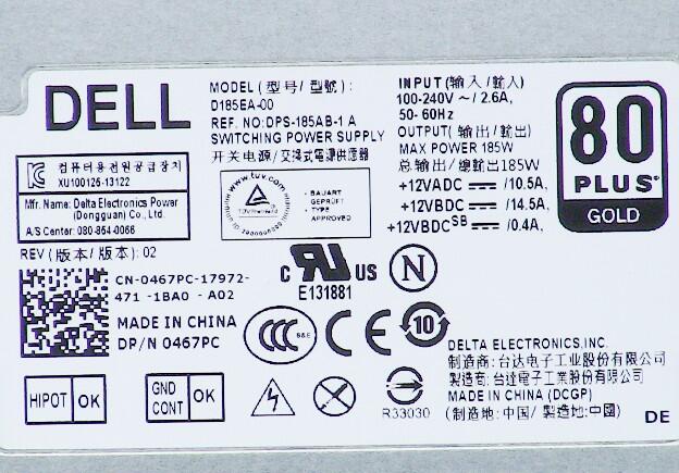 467pc – dell inspiron 23 (5348) / optiplex 9030 all-in-one 185w power supply