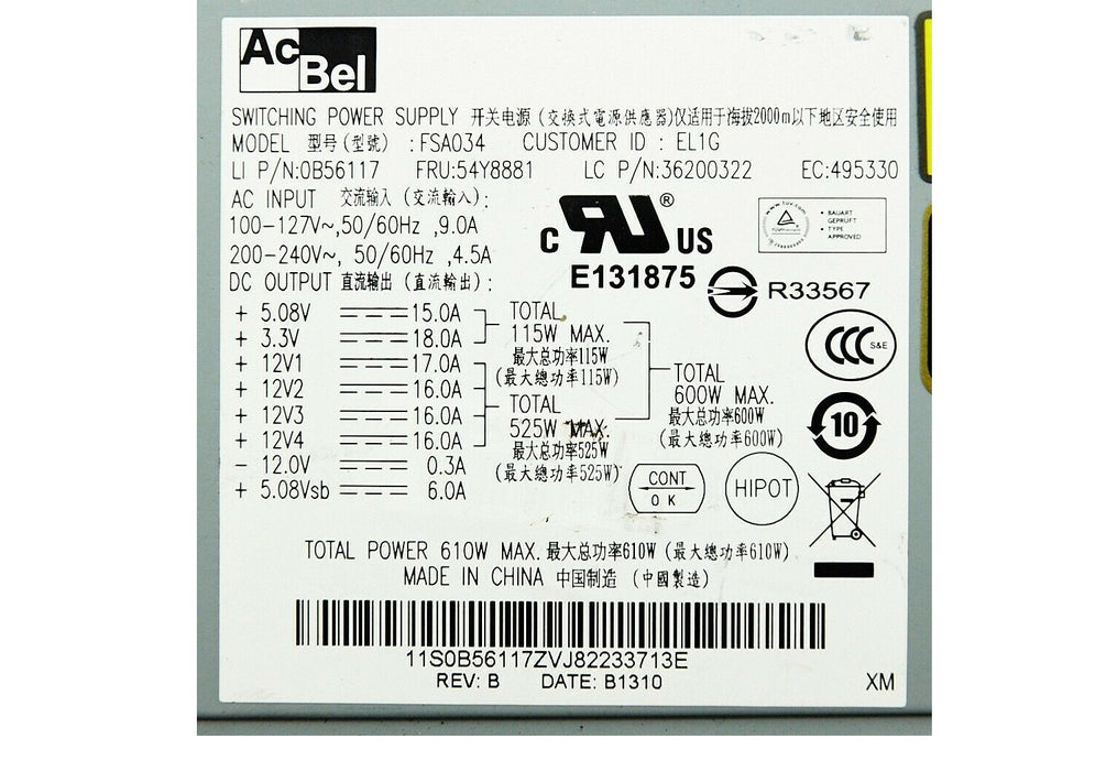 New Lenovo ThinkStation S30 80Plus Gold Switching Power Supply 610W FSA034 54Y8881 54Y8844 54Y8905